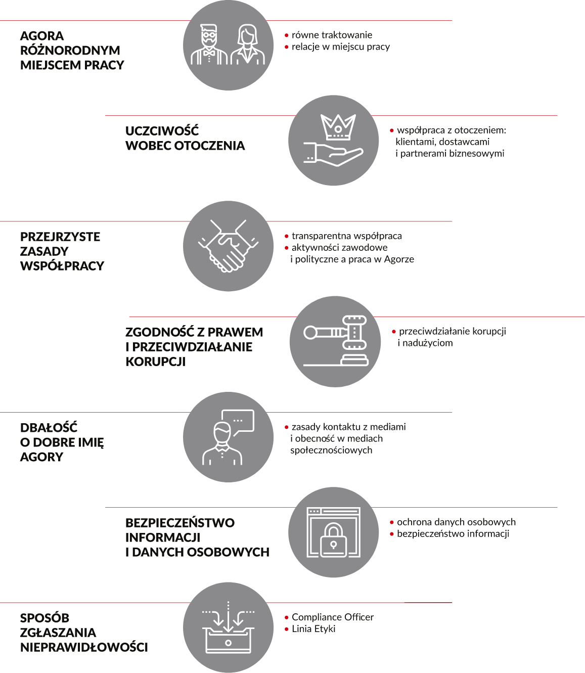 Samoregulacje branżowe związane są w szczególności z odpowiedzialnością Grupy Agora w ramach jej głównej działalności: medialnej oraz reklamowej. Grupa Agora dokłada wszelkich starań, aby powyższe zasady były realizowane zgodnie z oczekiwaniami interesariuszy.