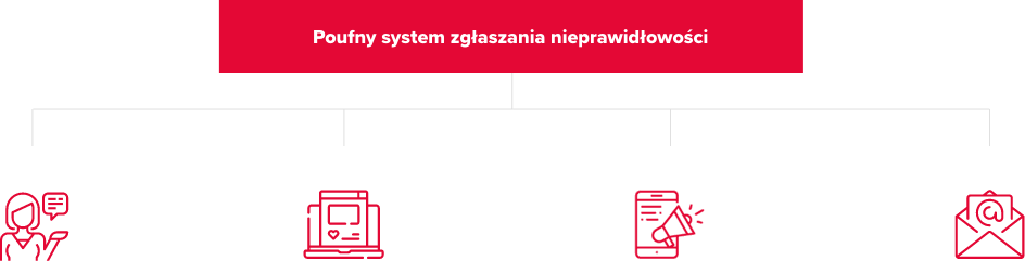 rozszerzenie możliwości przekazywania wątpliwości, pytań lub nieprawidłowości. Wraz z Kodeksem etyki wprowadzony został anonimowy, poufny i bezpieczny zewnętrzny kanał komunikacji prowadzonych przez Linię Etyki – zewnętrzną firmę ekspercką;